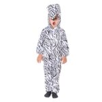- Zebra Fancy Dress Costume gives children a playful black & white zebra look for stage and school events.