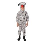 Dog Fancy Dress Costume for Kids comes in a cute white color with black dots, giving a lovely spotted puppy look. It’s designed specially for comfort, so kids can enjoy performing or playing without feeling restricted.