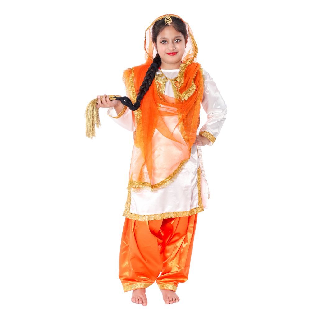 Giddha Dance Fancy Dress – Orange & White Punjabi Folk Costume