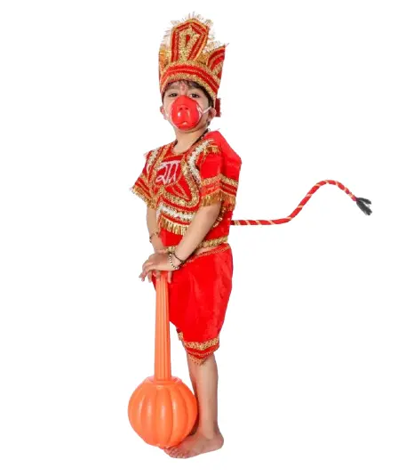 - Half kurta, shorts, gada (mace) and accessories are included for a complete Hanuman look.