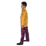 Indo Western Dance Dress for Boys in Yellow & Purple is designed for energetic stage performances and group dance shows. Made with premium brocade and heavy satin fabric, it offers a unique fusion of traditional and modern style.