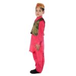 The Kashmiri Traditional Dress for Boys with Cap – Magenta & Bottle Green Costume is specially designed for fancy dress competitions, cultural festivals, and folk dance performances. The vibrant magenta and bottle green color combination beautifully reflects the traditional Kashmiri spirit, making it a perfect choice for school programs, stage performances, and cultural events.