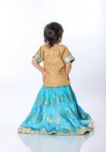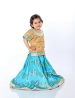The Kids Lehenga Choli Fancy Dress – Firozi & Golden is a beautiful outfit designed for cultural functions and school performances. This elegant Kids Lehenga Choli Fancy Dress Costume is crafted from smooth satin fabric, ensuring comfort while maintaining a graceful traditional appearance.
