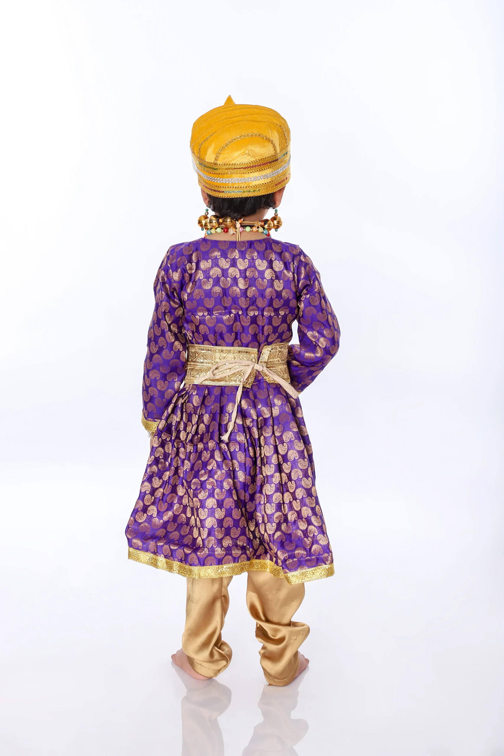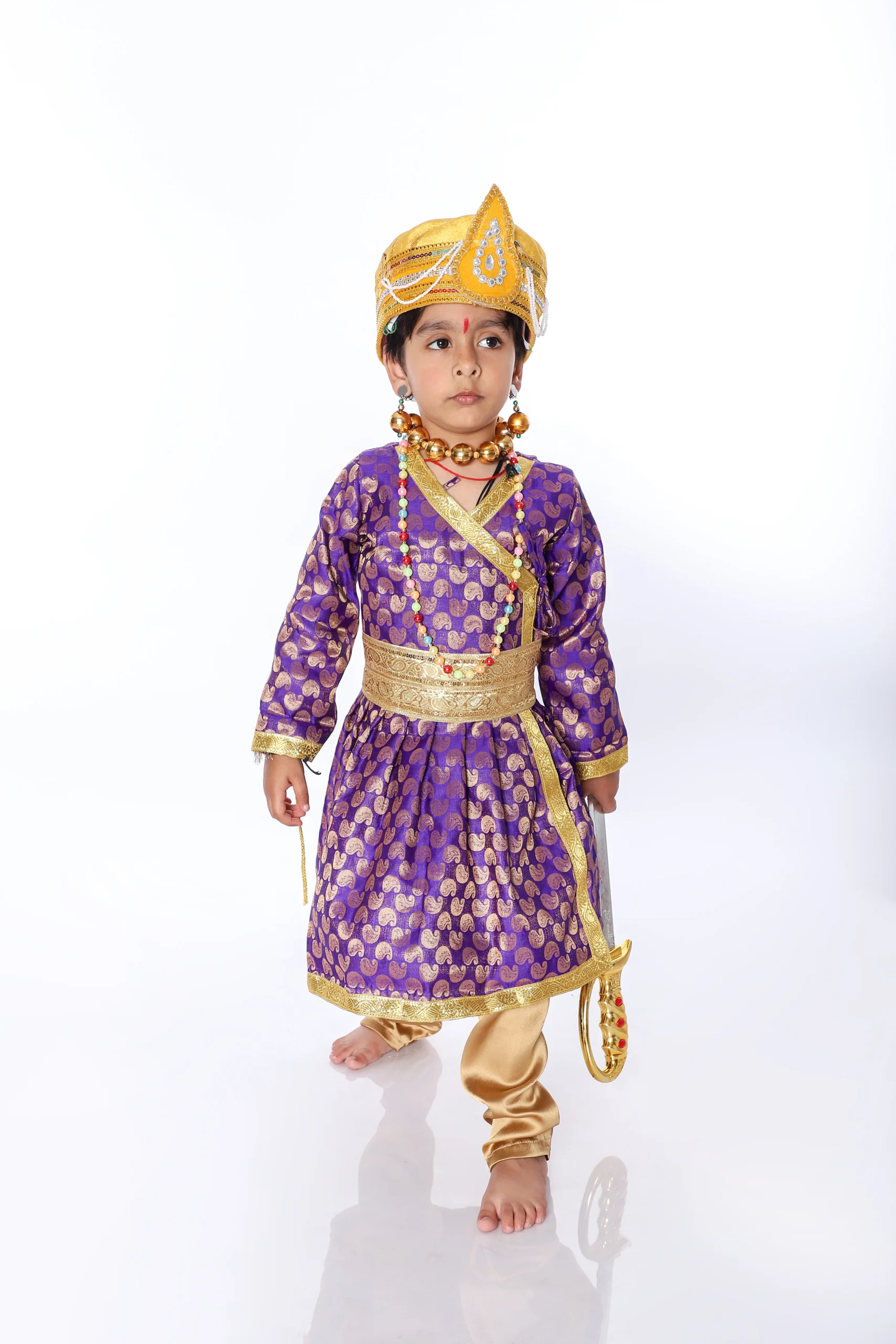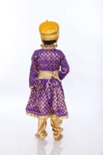 The rich purple and golden color combination gives a powerful and regal appearance, making your child stand out confidently on stage. Crafted from premium brocade and chairman fabric, the costume reflects royal elegance while ensuring comfort and durability during long performances.