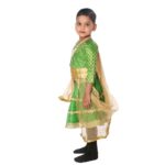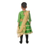 The Lehenga Fancy Dress Costume for Girls is beautifully designed for young performers participating in traditional dance programs and cultural events. The elegant green color paired with a golden dupatta creates a royal and graceful stage appearance, making it perfect for school functions and festive performances.
