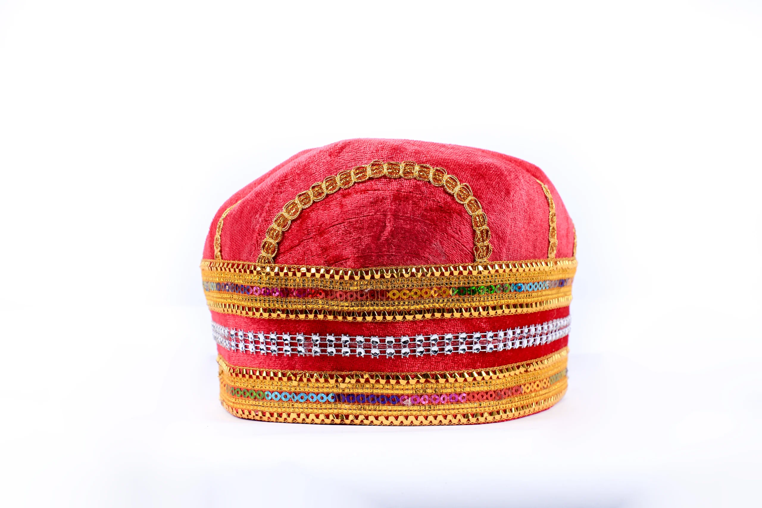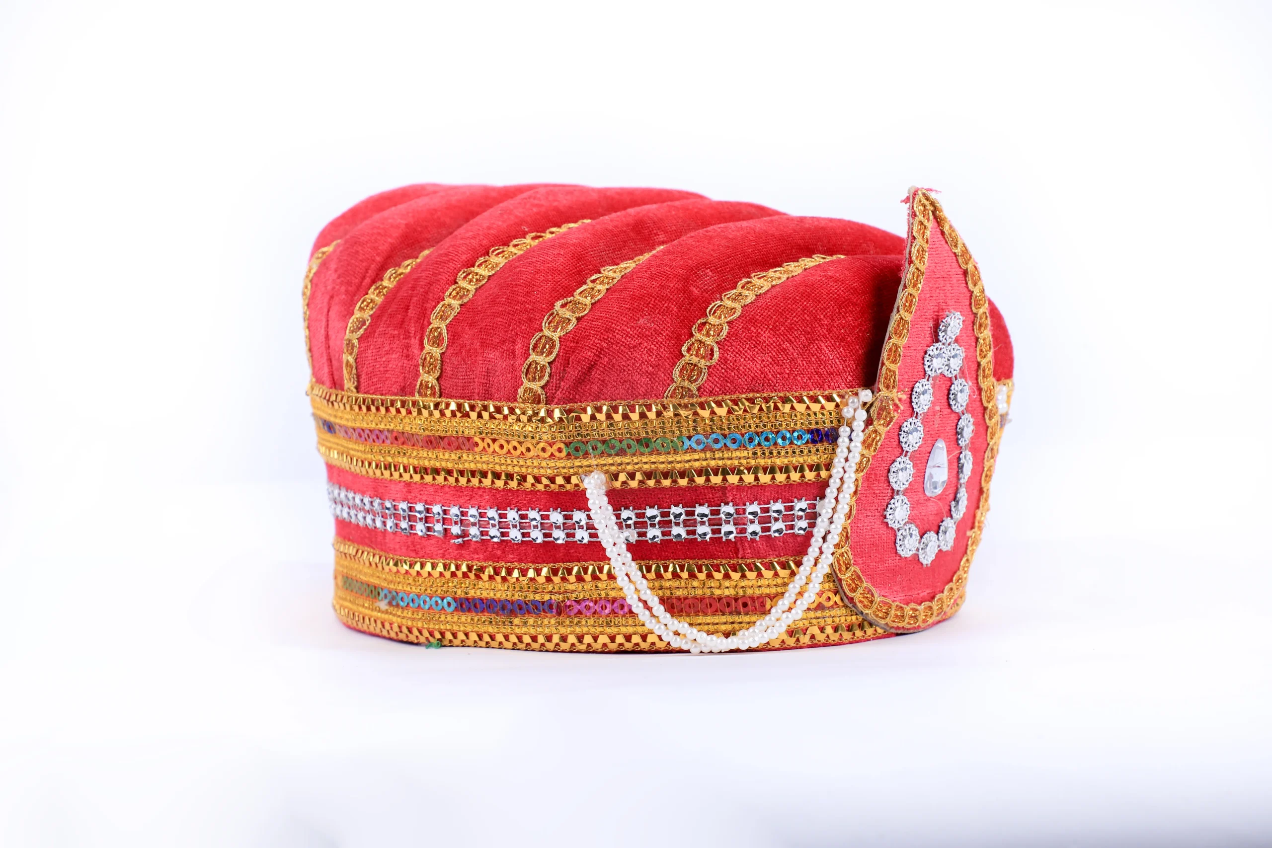 The Mughal Fancy Pagdi Red Turban – Royal Mughal Style Headwear is a beautifully designed traditional accessory inspired by the elegance and grandeur of Mughal culture. Its bold red color adds a majestic and royal touch, making it ideal for cultural programs, fancy dress competitions, historical stage performances, and themed school functions.