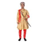 Inspired by the royal legacy of the Mughal Empire, this outfit features a rich red and golden color combination that symbolizes power, royalty, and elegance. The premium brocade and chairman fabric enhances the regal appearance while ensuring comfort and durability during stage performances.