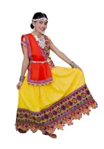 If you are looking for a stylish, comfortable, and traditional Red & Yellow Navratri Lehenga Choli Fancy Dress for Girls, this costume is a perfect choice for festive celebrations and Garba dance events.