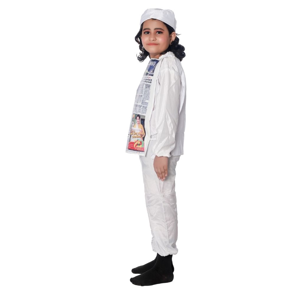 Newspaper Fancy Dress Costume is a creative themed dress designed for kids participating in school and stage events. This costume features a clean white base that represents the newspaper theme clearly and looks neat during performances. Made from chairman fabric, it is lightweight and comfortable for children to wear for long durations.
