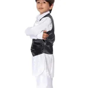 Pathani Fancy Dress Costume for Boys – White Kurta with Black Jacket