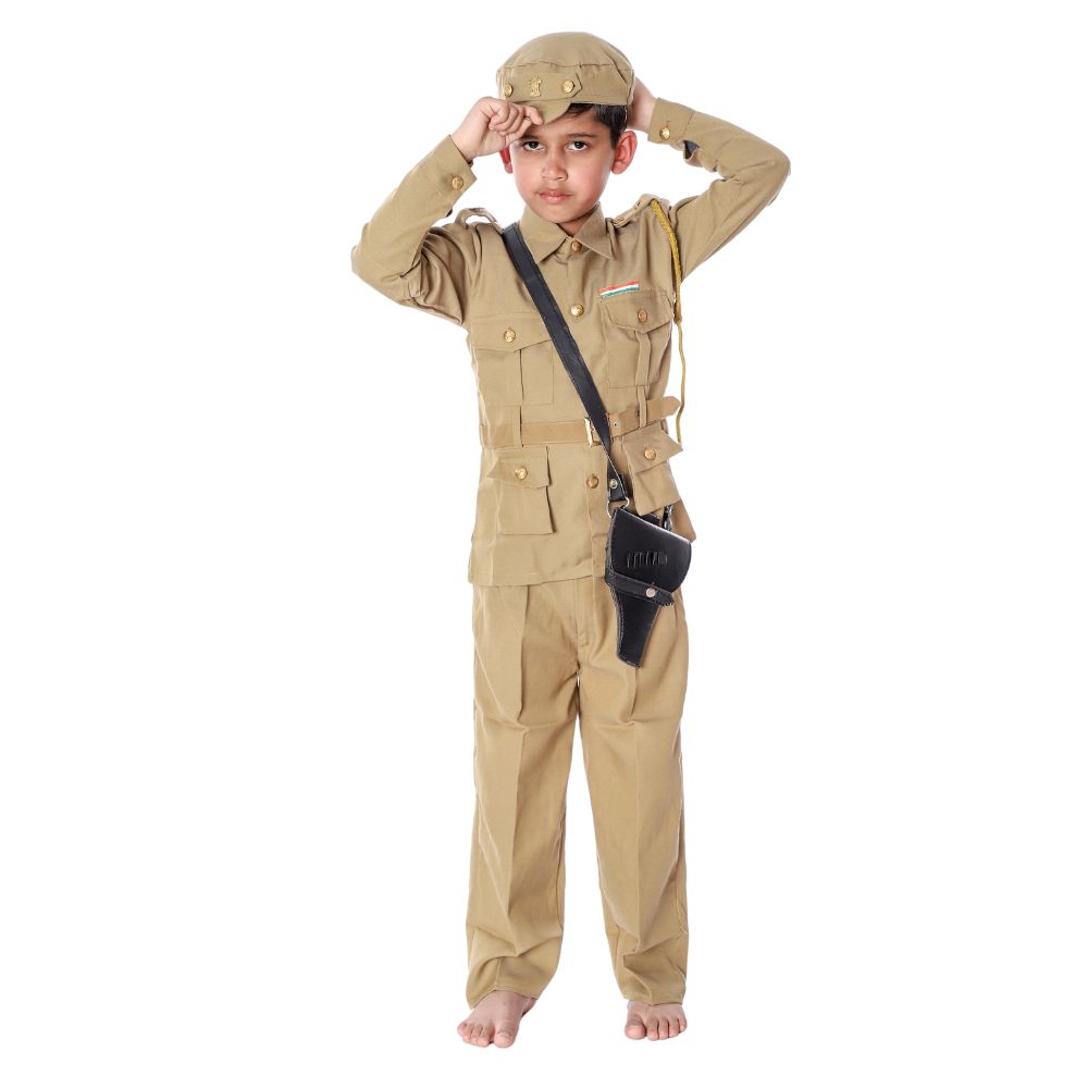 The Police Fancy Dress Costume for Kids – Khaki Police Uniform Set by Sanskriti Fancy Dresses is specially designed to give children a smart and professional police officer appearance. The classic khaki uniform style creates a confident and disciplined look, making it an ideal choice for fancy dress competitions, annual day functions, role play activities, and school programs.