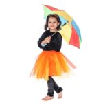 Umbrella Dance Fancy Dress Costume is specially designed for energetic dance performances and school functions. With its beautiful silver, black and orange color combination, it looks stunning on stage and allows easy movement while dancing.