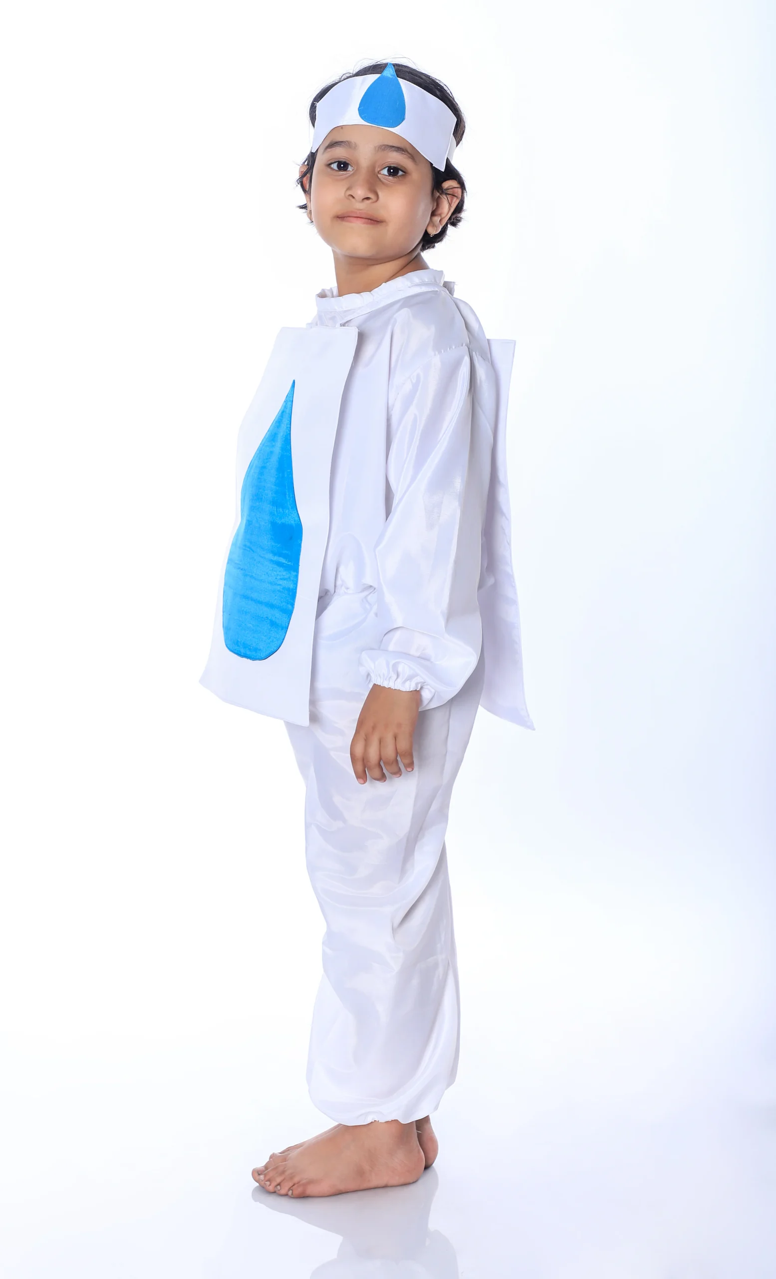 The Water Drop Fancy Dress Costume for Kids – White with Blue Drop Theme is thoughtfully designed for children participating in environmental and nature-based events. With its clean white base and attractive blue water drop design, this costume beautifully represents the message of Save Water and Water Conservation during school programs and awareness rallies.
