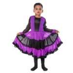 The elegant black and purple color combination creates a bold and fashionable look that stands out beautifully under stage lights. Made from lightweight georgette fabric, the frock offers a graceful flow and smooth texture, allowing free movement during energetic dance routines. The soft and breathable material ensures comfort, making it suitable for long performances and events.