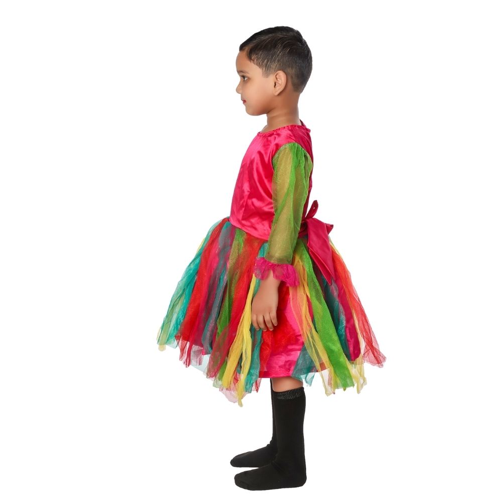 The Western Style Frock Fancy Dress Costume for Girls is thoughtfully designed to add charm, elegance, and vibrant energy to your child’s stage appearance. The attractive multicolor design creates a lively and eye-catching look, making it a perfect choice for dance performances, school functions, and fancy dress competitions.
